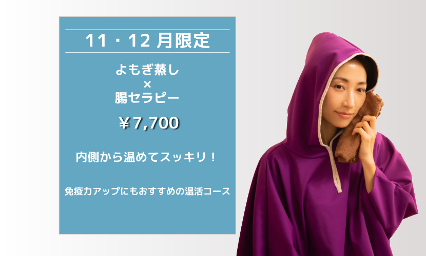 カウンセリング→よもぎ蒸し40分→腸セラピー30分